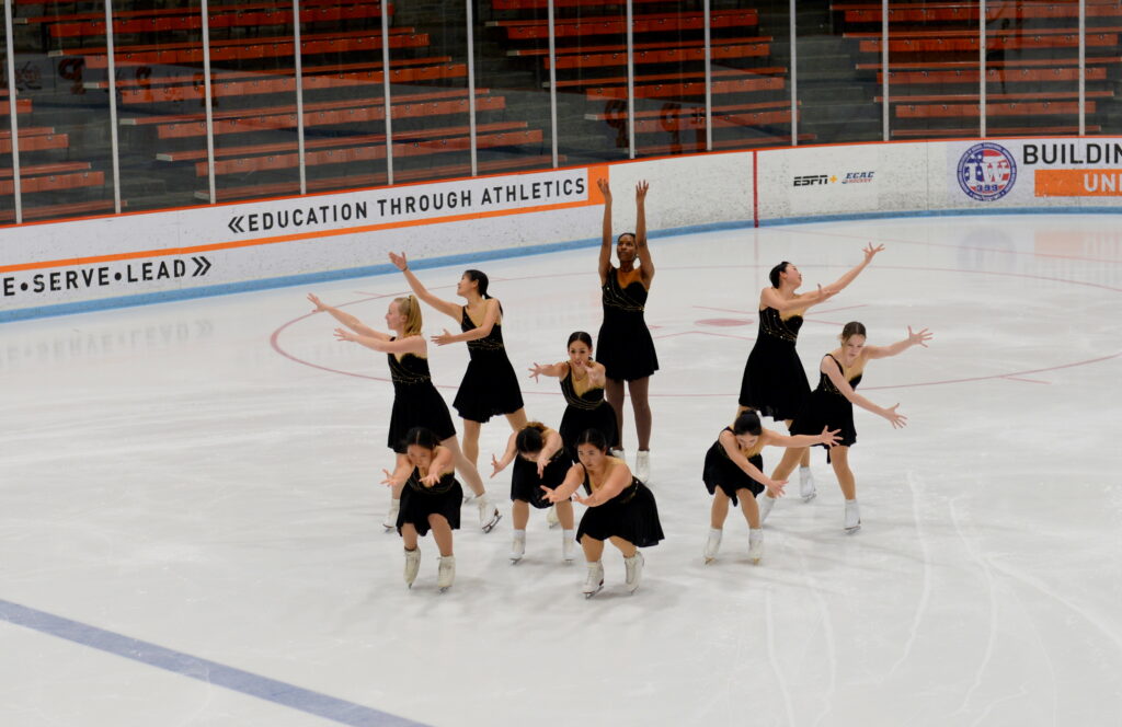 Our synchronized skating team competes in the open collegiate division against other club teams. We practice twice a week on ice with our coach Nikie Owens, and once a week on ice under our captains instruction. We also compete in Eastern Sectionals annually. The Princeton University Synchronized Skating Team has ranged in size from nine to seventeen skaters.